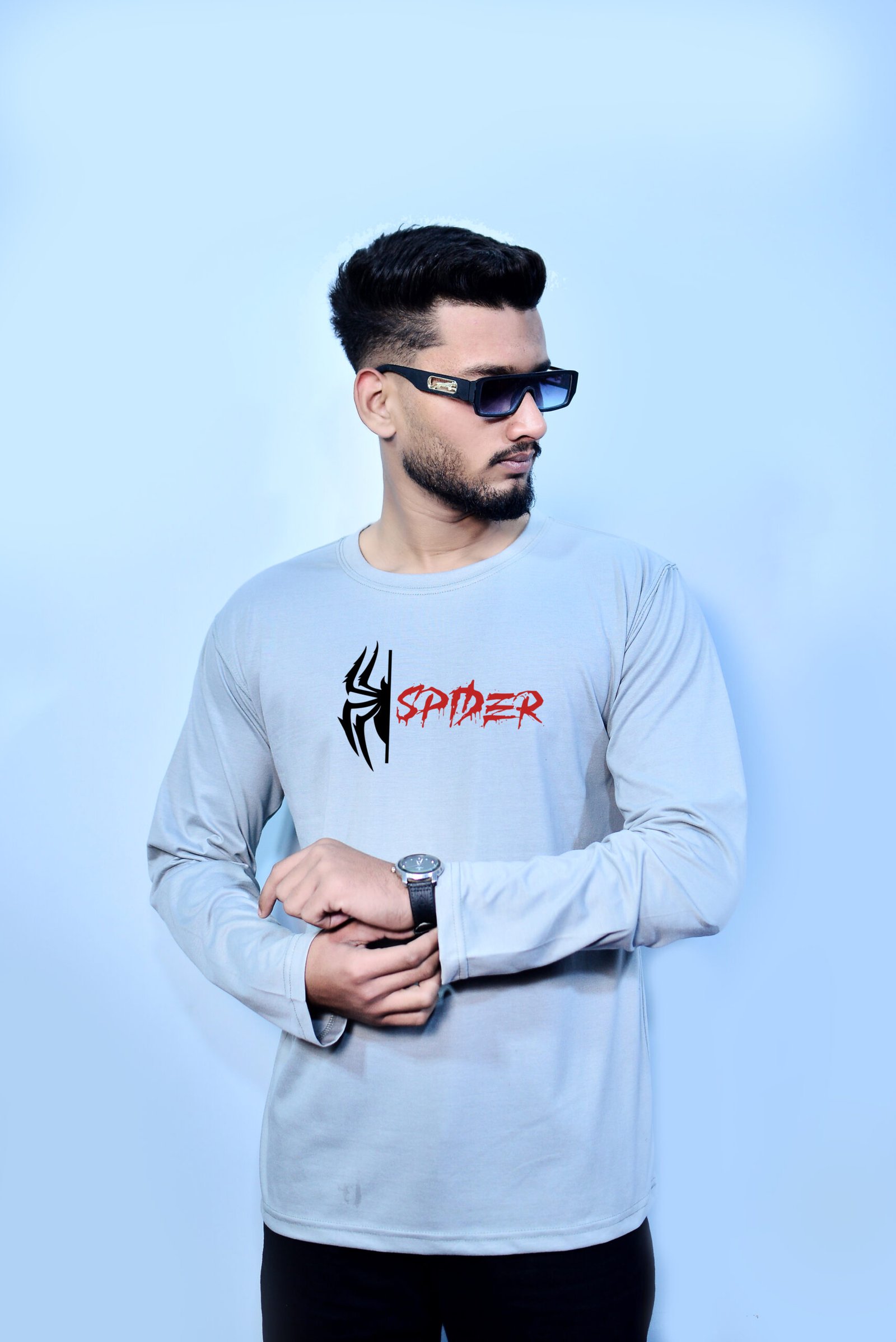 – FULL SLEEVES GRAY SPIDER GRAPHIC TEES –