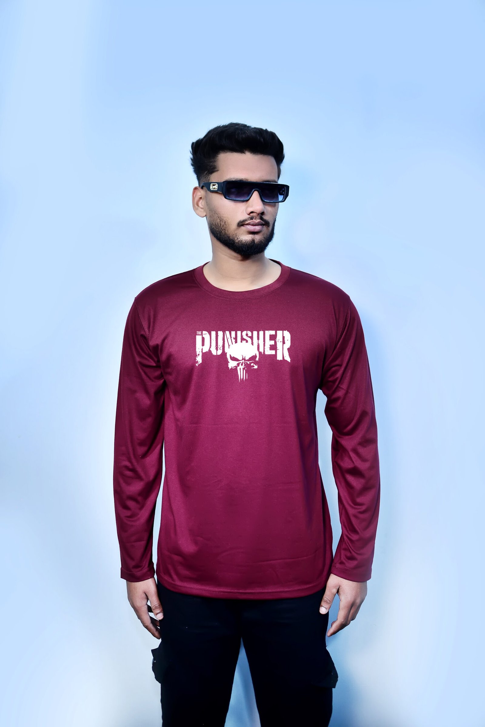 – FULL SLEEVES MAROON PUNISHER GRAPHIC TEES –